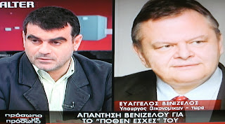 Απαντώντας στην (επίσης εκ των καλεσμένων) Χριστίνα Κοραή, η οποία επισήμανε στον κ. Βενιζέλο, ότι επρόκειτο για θέμα που είχε αποκαλύψει στην «Ελευθεροτυπία» η Αριστέα Μπουγάτσου, ο κ. υπουργός αιφνιδίασε, χαρακτηρίζοντας την απόφαση του Γενικού Λογιστηρίου «παράνομη»! Και αιτιολόγησε τον χαρακτηρισμό αυτό, με τον εκπληκτικό ισχυρισμό ότι: «Είναι παράνομη, επειδή δημοσιεύθηκε στην Ελευθεροτυπία, αν και επρόκειτο για απόρρητο έγγραφο»!