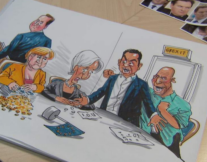 Μια σειρά σκίτσων τα οποία παρουσιάζουν με πολύ χιούμορ τους βασικούς παίκτες της διαπραγμάτευσης για το ελληνικό ζήτημα έδωσε στη δημοσιότητα ο γελοιογράφος του Sky News.