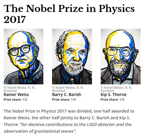 Σε τρεις επιστήμονες, τους Rainer Weiss, Barry Barish και Kip Thorne, απονεμήθηκε το Νόμπελ Φυσικής του 2017 για την παρατήρηση των κυμάτων βαρύτητας.