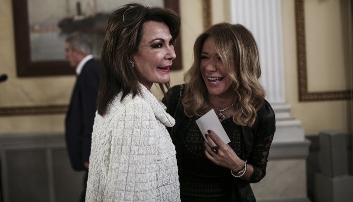 Η Γιάννα Αγγελοπούλου εμφανίστηκε στο Προεδρικό Μέγαρο φορώντας μια καρφίτσα στο πέτο, δώρο του πρίγκιπα Καρόλου. «Λίγοι φοράμε τέτοια καρφίτσα» είπε. Η κ. Αγγελοπούλου φυσικά υποκλίθηκε στον πρίγκιπα Κάρολο όταν συναντήθηκαν στο Προεδρικό Μέγαρο, όπως και η Μαριάνα Βαρδινογιάννη.Μια χαλαρή υπόκλιση έκανε η Μαρέβα στον πρίγκιπα, αλλά την μεγαλύτερη έκανε ο Πάνος Καμμένος στον… Αρχιεπίσκοπο.