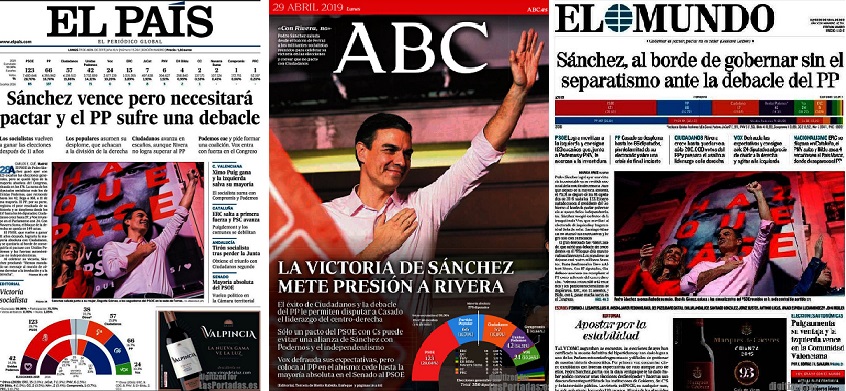 «Ο Σάντσεθ έχει κάθε λόγο να είναι ικανοποιημένος» γράφει η καταλανική El Periodico και προσθέτει: «Νίκησε με μεγάλη διαφορά τον μεγάλο αντίπαλό του -το Λαϊκό Κόμμα του Παμπλο Κασάδο-, αλλά χρειάζεται μετεκλογικές συμφωνίες για να σχηματίσει κυβέρνηση, στις οποίες ενεργά ή παθητικά θα συμμετέχουν και οι αυτονομιστές (και δεν ήθελε αυτό το σενάριο). Θα παραμείνει στο παλάτι Μονκλόα, αλλά η πορεία των συμφωνιών θα είναι πολύπλοκη. Το ξέρει. Ο Πάμπλο Ιγκλέσιας και οι Unidos Podemos, σώζουν την κατάσταση αν και με ένα αποτέλεσμα πολύ χειρότερο από αυτό που είχαν το 2015 ή το 2016, αλλά αρκετά ισχυρό για να λειτουργήσουν μαζί με τους σοσιαλιστές και να ζητήσουν να μπουν στην κυβέρνηση».