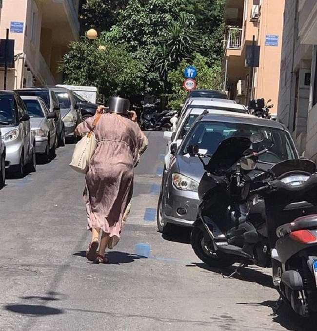 Οι χρήστες των social media υποδέχθηκαν με χιούμορ τη φωτογραφία που απεικονίζει μια γυναίκα να περπατάει στη Βουκουρεστίου, με μια κατσαρόλα στο κεφάλι, για να προστατευτεί από τον σεισμό.
