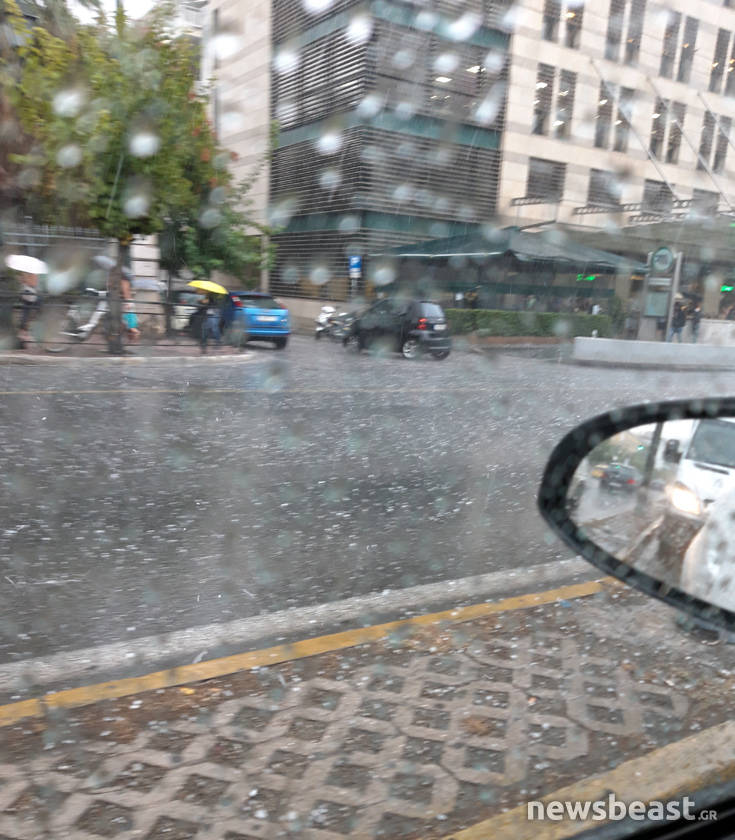Ισχυρή χαλαζόπτωση στο κέντρο της Αθήνας.