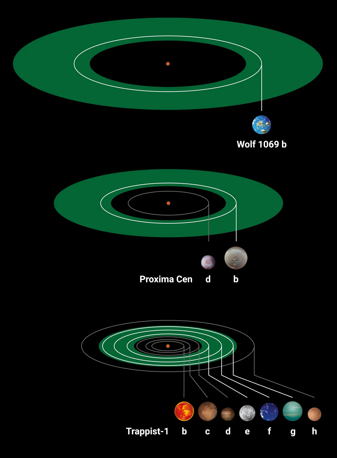 Μία τέτοια απόσταση θα ήταν σίγουρα πολύ κοντά αν το Wolf 1069 ήταν ένα άστρο σαν τον Ήλιο μας, με τις θερμοκρασίες να έκαναν ακατάλληλη την ύπαρξη ζωής. Ωστόσο πρόκειται για έναν ερυθρό νάνο, πολύ μικρότερο και πιο ψυχρό από τον Ήλιο. Έτσι η κατοικήσιμη ζώνη είναι πολύ πιο κοντά στο άστρο. Παρόλο λοιπόν που ο εξωπλανήτης Wolf 1069b είναι 15 φορές πιο κοντά στο άστρο του από ότι η Γη στον Ήλιο, η ακτινοβολία που λαμβάνει είναι μόνο το 65% από αυτήν που λαμβάνει η Γη από τον Ήλιο.