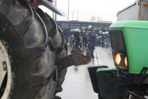 Με μία συντονισμένη και αιφνιδιαστική ενέργεια, αγρότες των Σερρών κατάφεραν να διαπεράσουν το μπλόκο της Αστυνομίας στον κόμβο του Λευκώνα. Παρά την ισχυρή παρουσία δυνάμεων