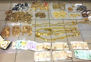 Η αξία των κοσμημάτων υπερβαίνει το 1 εκατ. ευρώ, ενώ κατασχέθηκαν επίσης 76.070 ευρώ, 700 χρυσές λίρες, πολυτελή ρολόγια, όπλα, φυσίγγια και μικροποσότητα ναρκωτικών. Όλα