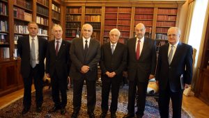 Τον νέο πρόεδρο της Ελληνικής Ένωσης Τραπεζών (ΕΕΤ) Νικόλαο Καραμούζη και τους αντιπροέδρους της Γεώργιο Χατζηνικολάου, Παναγιώτη-Αριστείδη Θωμόπουλο και Βασίλειο Ράπανο και τον γενικό γραμματέα