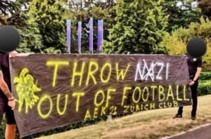 Σε μια κίνηση διαμαρτυρίας, οι οπαδοί της Ένωσης από το κλαμπ της Ζυρίχης σήκωσαν πανό διαμαρτυρίας έξω από τα γραφεία της UEFA στη Νιόν Σε